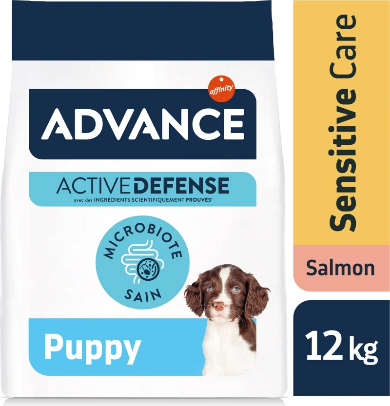 9ADVANCE Sensitive Puppy es un alimento de alta gama especialmente indicado para cachorros de todos los tamaños y de 2 a 12 meses de edad con sensibilidad digestiva. La sensibilidad digestiva puede manifestarse a través malas digestiones y de forma ocasional a través de síntomas cutáneos. Su fórmula monoprotéica, con salmón como única fuente de proteína animal y con arroz, hacen de ADVANCE Sensitive Puppy un alimento fácil de digerir e ideal para cachorros con sensibilidad digestiva. Advance Sensitive Puppy cuida de tu cachorro sensible mientras que le proporciona todos los nutrientes necesarios para que crezca fuerte y sano.