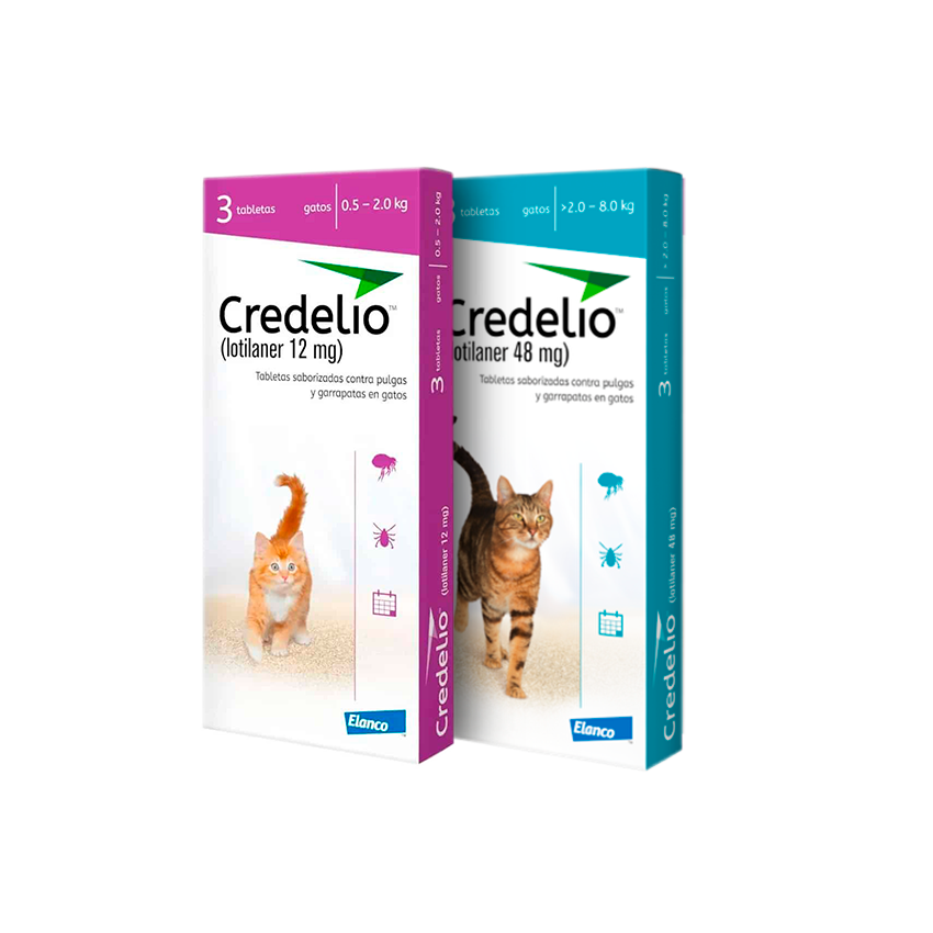 CREDELIO GATO es el primer antiparasitario oral en comprimidos masticables. Su fórmula ofrece una protección efectiva y duradera contra pulgas y garrapatas, eliminándolas rápidamente ya que su efecto empieza a partir de las 4 horas y en 24 horas ya estan eliminadas el 100%. Y además previnie nuevas infestaciones. De fácil administración y alta palatabilidad, asegura la protección de tu gato con una sola dosis mensual.