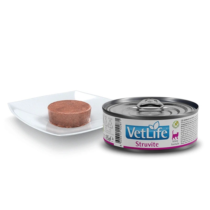 Farmina Vet Life Struvite es un alimento dietético completo formulado para la disolución de cálculos de estruvita y reducir la aparición de recidivas de los cálculos de estruvita en gatos.