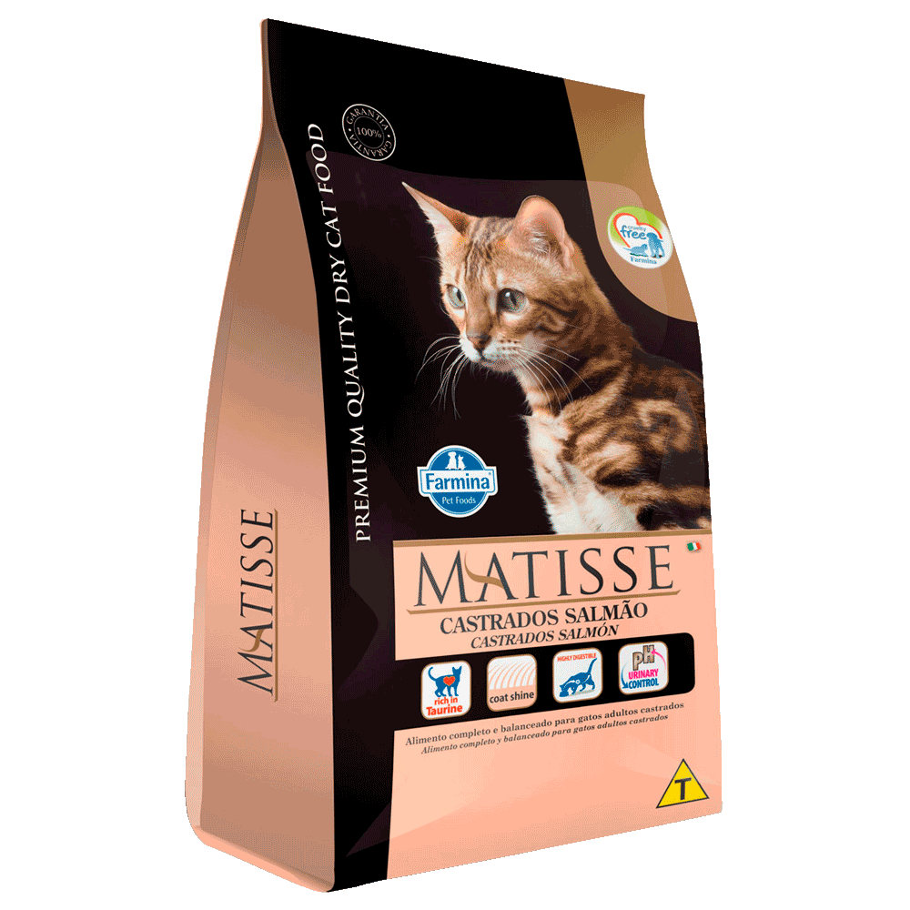 Matisse Castrados Salmón incorpora una cantidad ideal de taurina, un aminoácido que los gatos no pueden sintetizar y que es vital ya que interviene en la formación de la bilis, en la función cardiovascular, renal y del sistema nervioso central de los gatos.