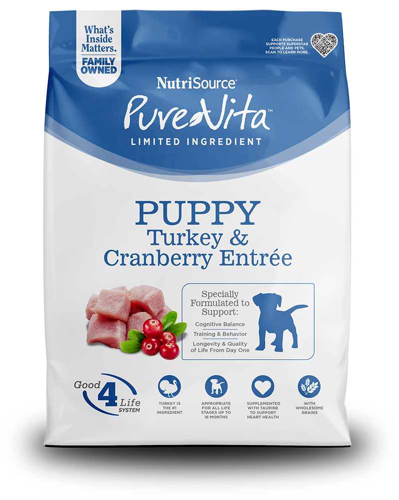 El NutriSource Pure Vita Puppy Turkey & Cranberry Entrée es un alimento seco diseñado específicamente para cachorros en crecimiento, formulado con ingredientes de alta calidad que aportan nutrición completa, balanceada y altamente digestible. Esta receta pertenece a la línea Pure Vita, que utiliza ingredientes seleccionados para apoyar la salud digestiva, el desarrollo y el bienestar general de tu cachorro.