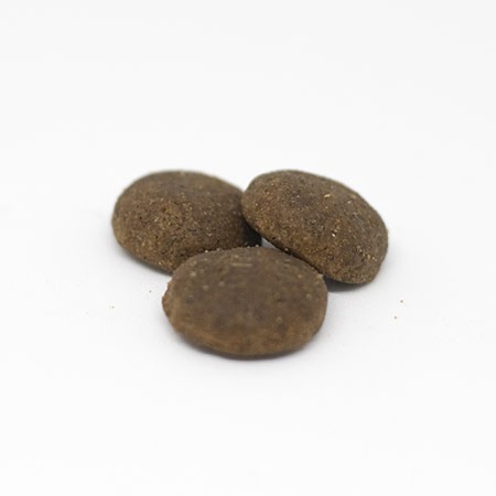 Completamos la receta con carbohidratos altamente digestibles y una variedad de verduras y frutas como los guisantes, la zanahoria, la manzana y los frutos rojos que aportan de vitaminas, minerales, fibra y antioxidantes. Finalmente añadimos un mix de hierbas como el romero, la caléndula y el diente de león que enriquecen la dieta y favorecen el bienestar intestinal.